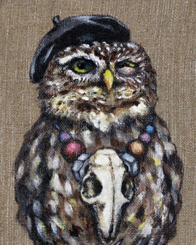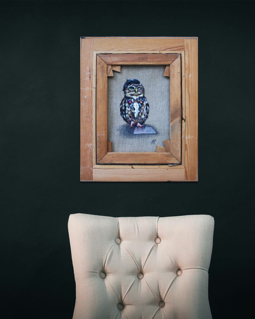 Exponerade mot det åldrade linnetyget framträder de porträtterade djuren som egna individer. Vem är betraktaren – du eller de? The Forgotten Fables är en representativ och berättande konstserie som utforskar identitet och vår syn på djur och natur. Genom att försiktigt måla djuren på baksidan av återvunna dukar får den gamla målningen en chans att fortsätta sin resa in i framtiden tillsammans med den nya.