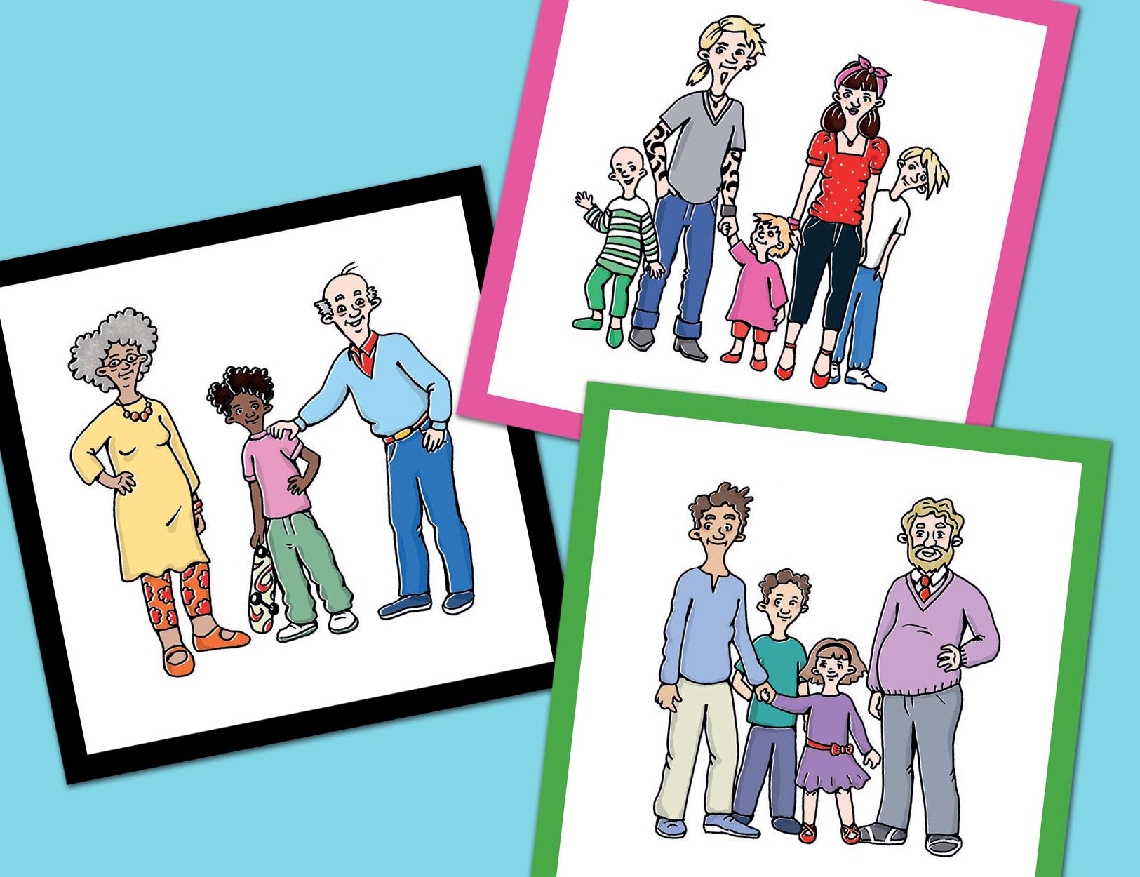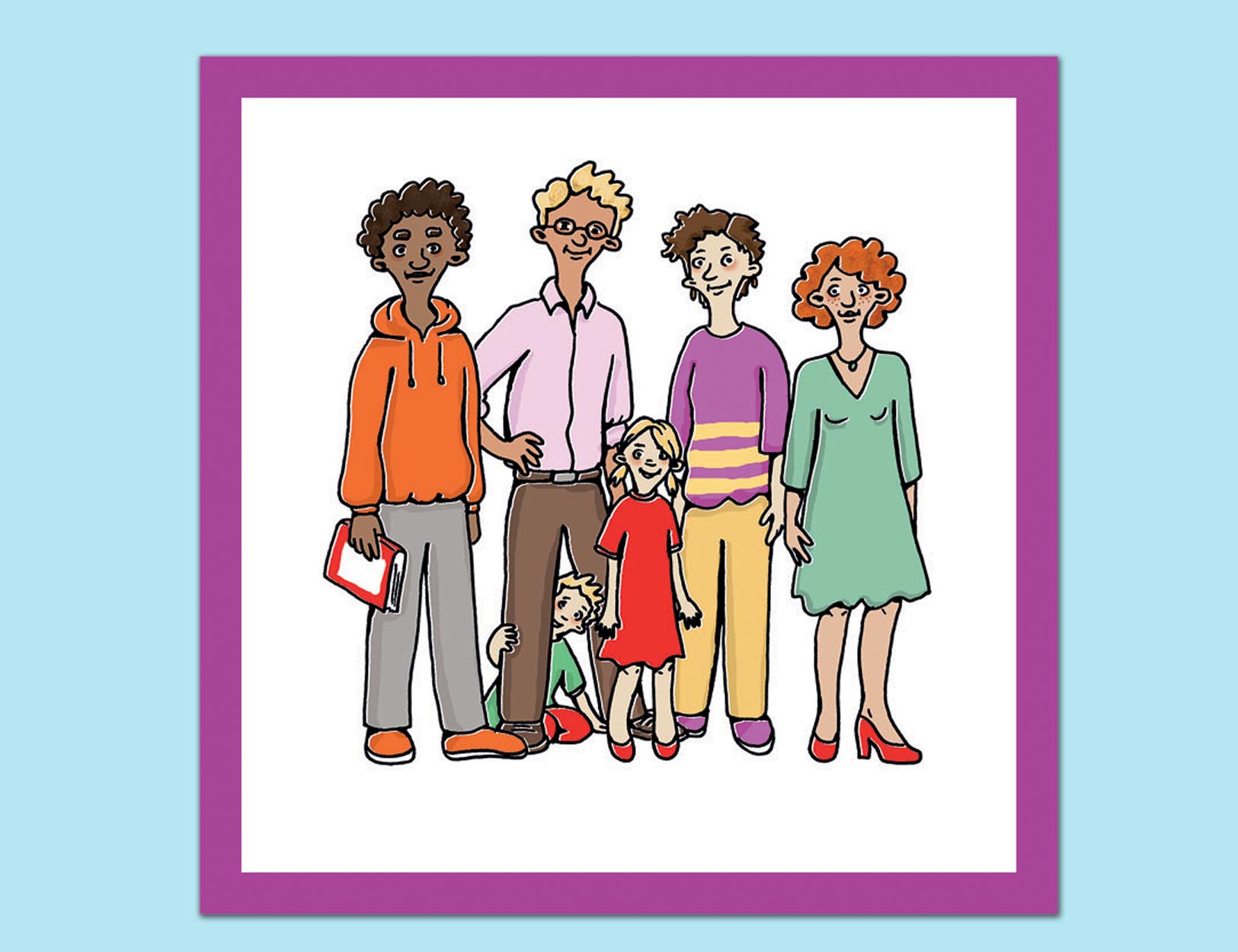 Alla familjer ser inte likadana ut. Det här memoryt har tagits fram för att uppmuntra till dialog och diskussion om olika familjekonstellationer. Tanken är att det ska låta barnen själva beskriva vad de ser samtidigt som de letar efter matchande familjer.