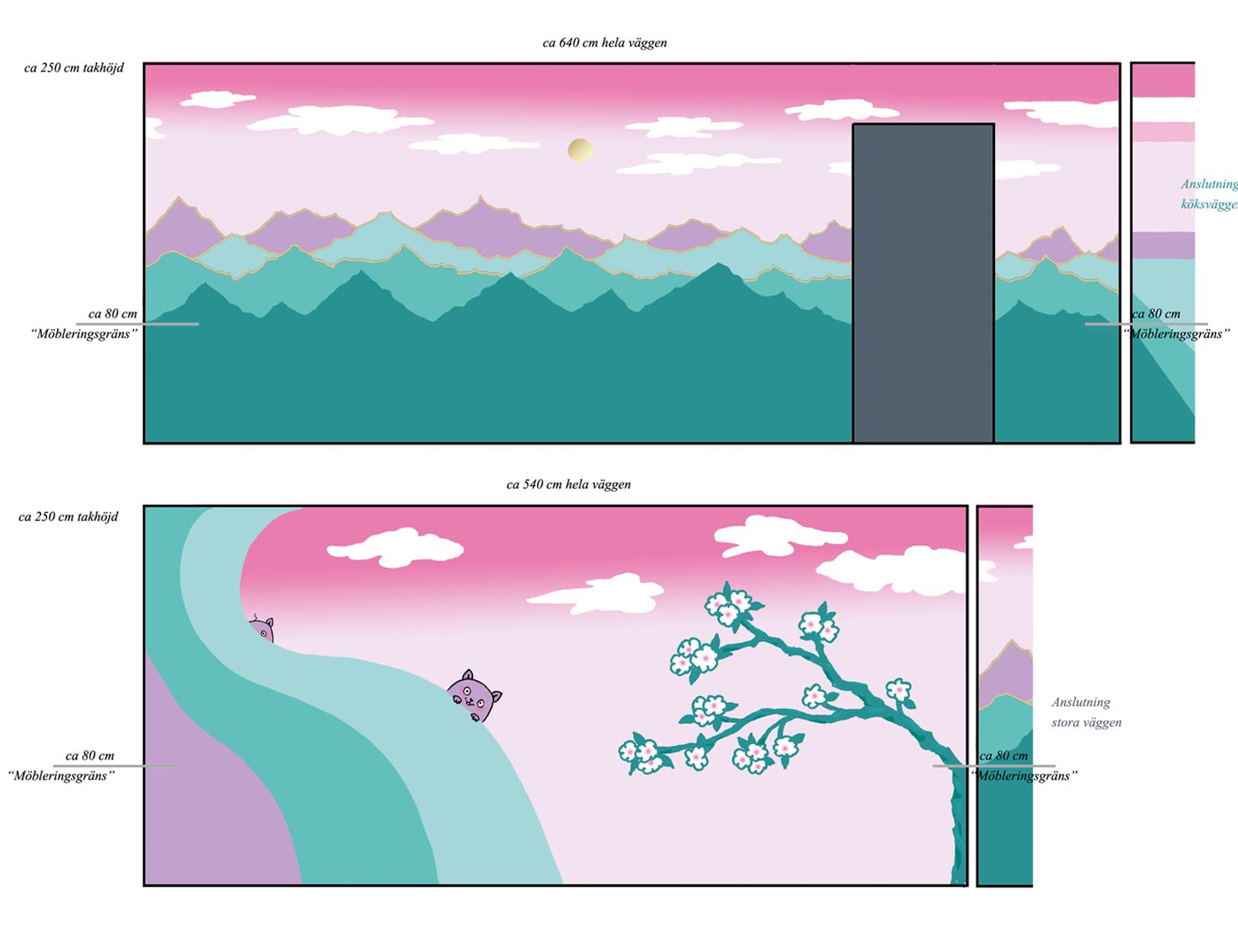 Jag tog fram fram kalla, klara färger och motiv som skulle skapa en känsla av rymd och lekfullhet.